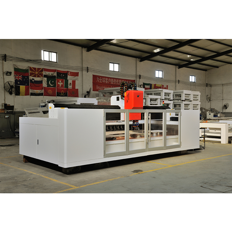 石材加工中心擺放位置進出料端應預留不小于線架的長度,如果加工方有特殊要求,比如線條比較長,應該以線條尺寸為參考,設備后側應有不小于1米的空間,方便技術師維護和線條加工。